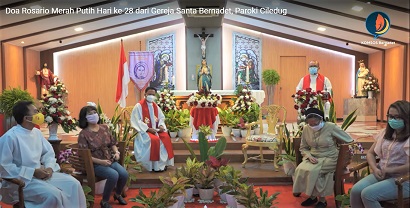 Dekorasi Rosario Merah Putih Gereja Bernadet, Romo Matius pun Ikut Merangkai Bunga