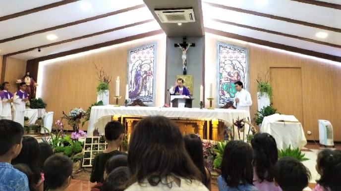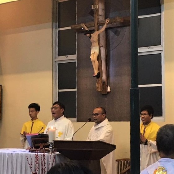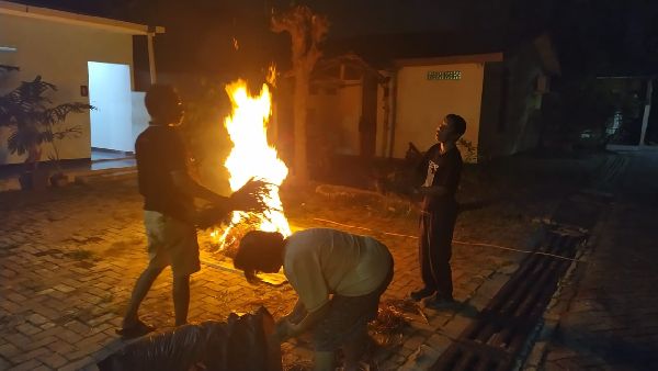 Tim Penata Ibadat Membakar Palma Kering untuk 5 Lokasi Misa di Paroki Ciledug