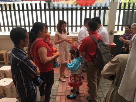 Buah jeruk lambang pembawa rezeki dibagikan pada saat umat pulang dari gereja.