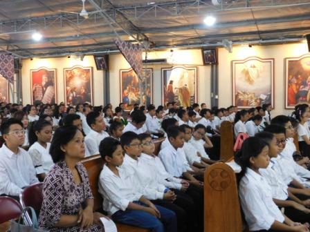 Peserta Pelantikan Putra Putri Altar mengikuti Misa
