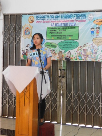 Sedangkan kategori Anak dan Remaja ada 19 peserta yang terdaftar dan kategori Dewasa 1 ada 23 peserta yang terdaftar. Lomba kedua kategori ini dilaksanakan di Gereja (Tenda Atas). Dan bertindak sebagai juri Bp.Leonardus Yoseph N Mage , Bp.Paulus Sulasdi dan Bp.Frederikus Djarwo Pramono.