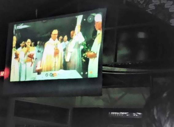 Sementara itu misa Malam Paskah Sabtu kemarin juga diadakan di Balai Pertemuan Metro Permata. Di dalam aula tampak hiasan daun dan telur paskah ditempel melingkari tiang-tiang dalam aula.