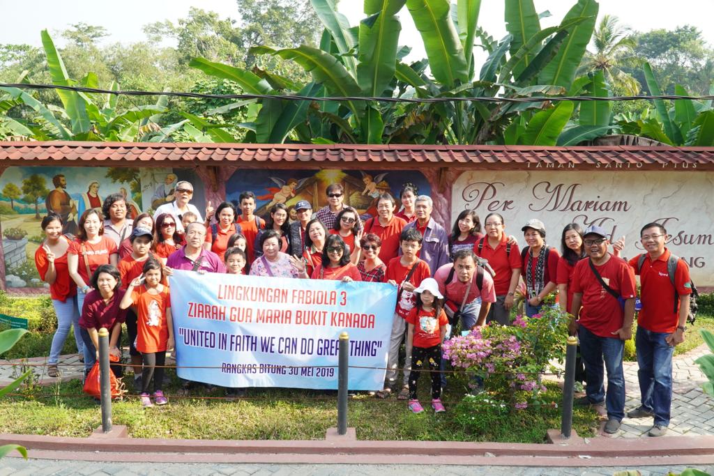 Dalam rangka memperingati hari Kenaikan Tuhan Yesus ke Surga dan menutup bulan Maria, pada hari Kamis, 30 Mei 2019, Lingkungan Fabiola 3 mengadakan ziarah ke Gua Maria Bukit Kanada, Rangkasbitung. Dengan peserta mencapai 34 orang, semua peserta berangkat dari Graha Raya menuju Stasiun Jurang Mangu di kawasan Bintaro, setelah itu menumpang Commuter Line menuju Rangkas Bitung tepat pada pukul 06.15 WIB.