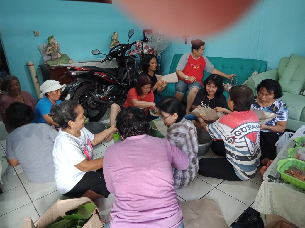 Kumpulan ibu-ibu dari wilayah sekitar gereja membuat dapur umum untuk membantu korban banjir.