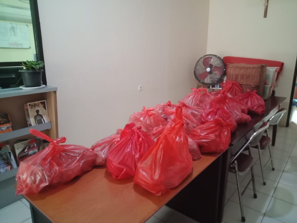 Ada yang memasak, memotong bahan-bahan, membungkus makanan, sekaligus mendistribusikannya, dan juga bersih-bersih. Bu Titik Amperawati dari Fabiola 1 yang diminta mengkoordinir bagian dapur umum, sementara pendistribusiannya tetap di bawah koordinasi Bu Sisil PSE.