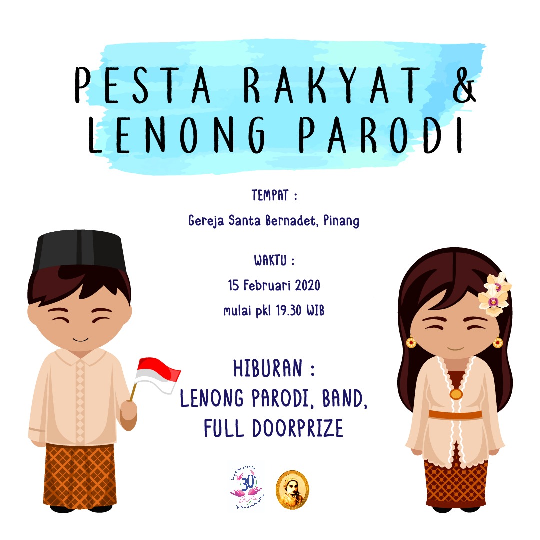 Untuk memeriahkan ulang tahun ke 30 ini, panitia juga menyiapkan pesta rakyat dan juga lenong parodi, kolaborasi dari komunitas penggiat budaya Betawi di sekitar gereja dengan beberapa umat dari Santa Bernadet. Dijamin lucu deh.. Di acara itu, juga disiapkan doorprize, acara awarding lomba altar antar wilayah, awarding lomba dance dan penampilan band dari OMK. Acara ini rencananya akan dilaksanakan di Sabtu, 15 Februari 2020 pukul 19.30 WIB. Jangan lupa hadir yaa