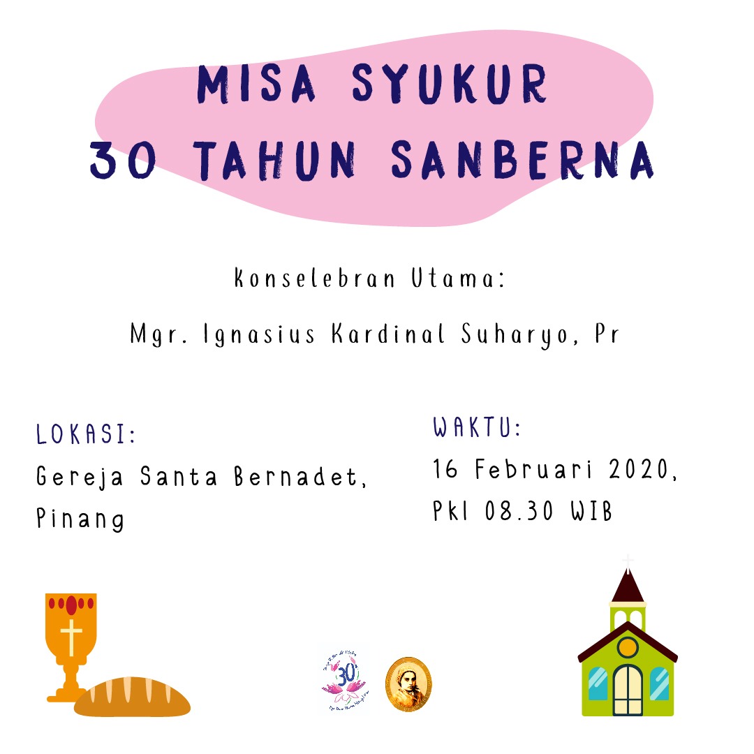 Tidak terasa, besok Februari 2020, Gereja Santa Bernadet tepat memasuki usia ke 30 tahun. Dengan kondisi saat ini, kita tetap wajib bersyukur. Meski gedung gereja secara fisik sampai detik ini belum juga hadir, semangat untuk menggereja dengan berbuat lebih untuk sesama dan warga sekitar tetap ada. Nah, untuk merayakan pesta 30 tahun ini, panitia sekuat tenaga untuk memberikan yang terbaik kepada seluruh umat dan juga lingkungan sekitar.