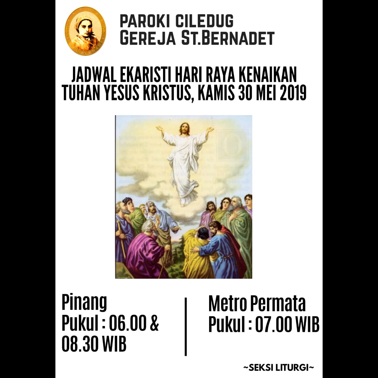 Jadwal Misa Kenaikan Tuhan Yesus, Penutupan Bulan Maria, dan Novena Roh Kudus 2019