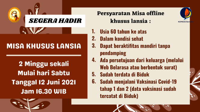 Info Belarasa: Pendaftaran Misa “Offline” Khusus Lansia, mulai Sabtu, 12 Juni 2021
