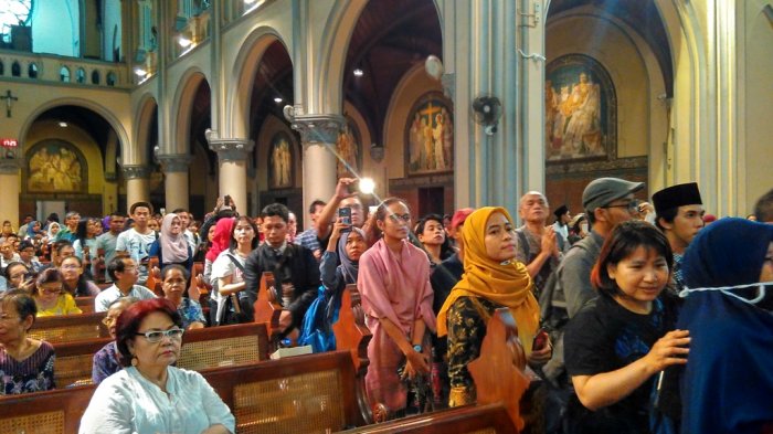 Rombongan peserta buka puasa bersama memasuki Gereja Katedral Jakarta.